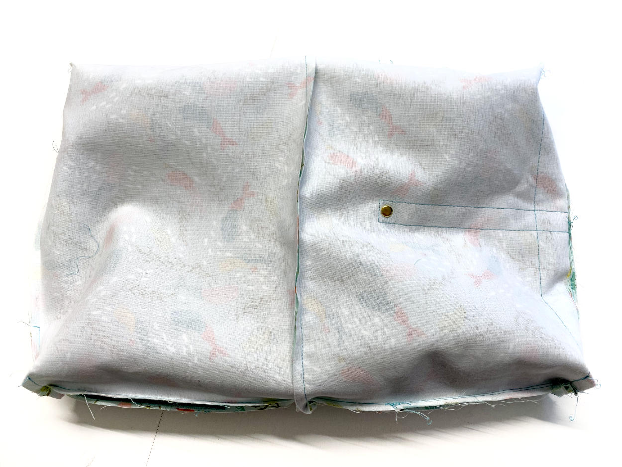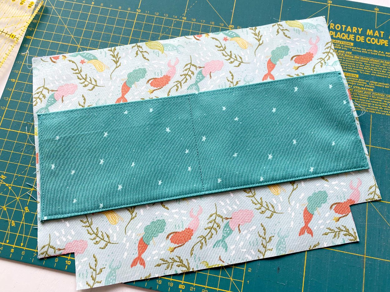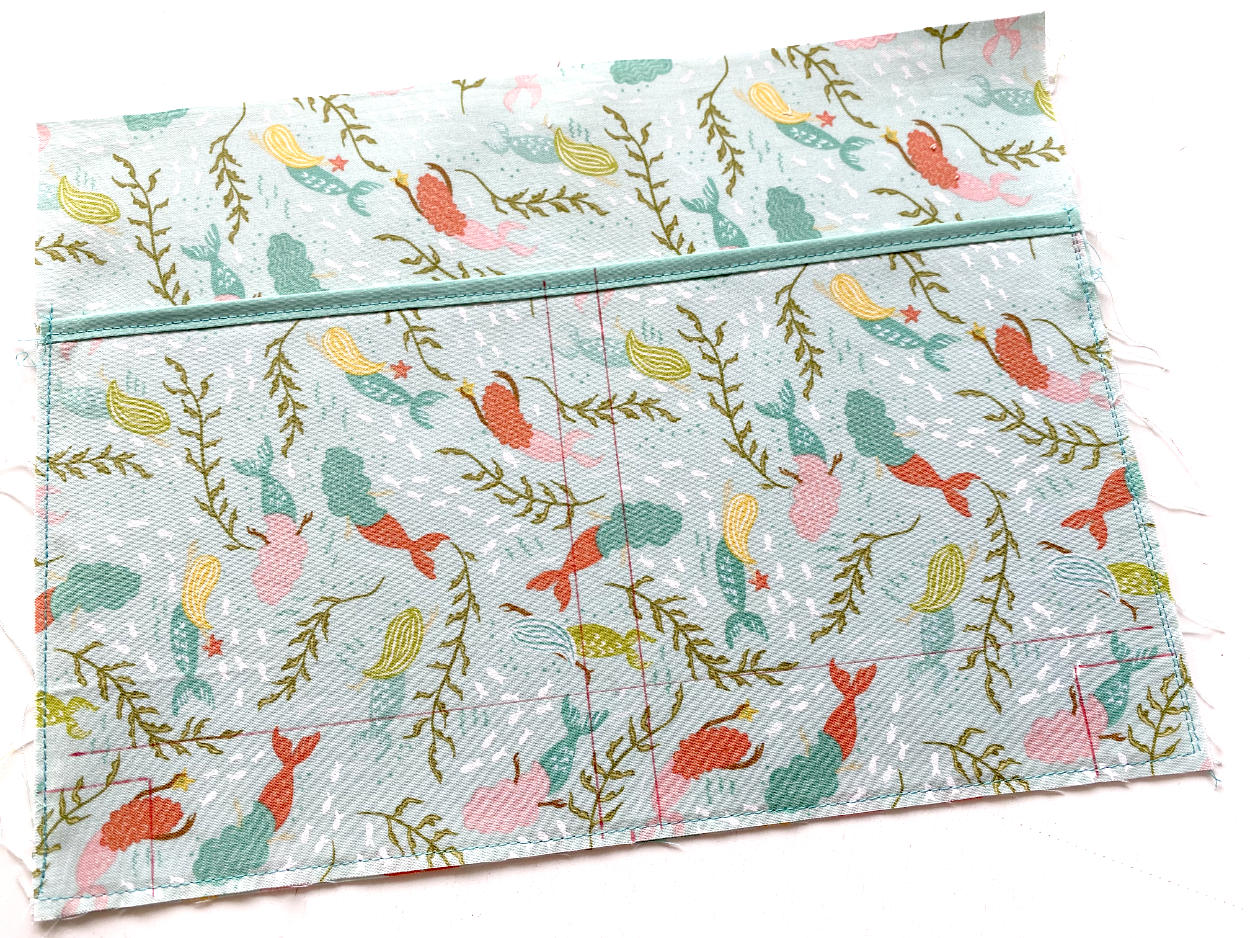 Um dafür zu sorgen, dass das Innenleben später nicht lose in der Tasche rumschlabbert, können wir es jetzt noch an der Außentasche fixieren. Wenn du das nicht möchtest, kannst du diesen Schritt überspringen.