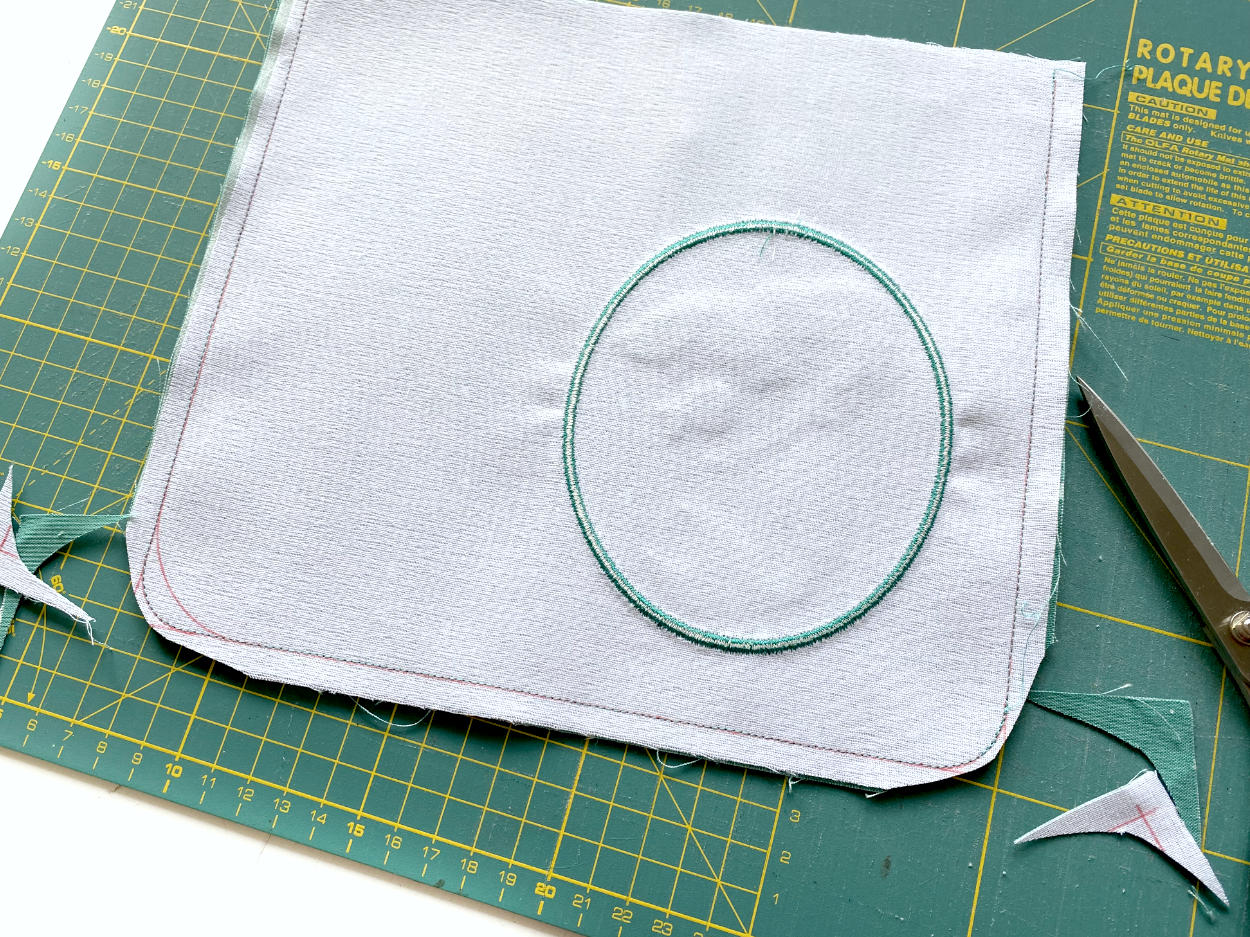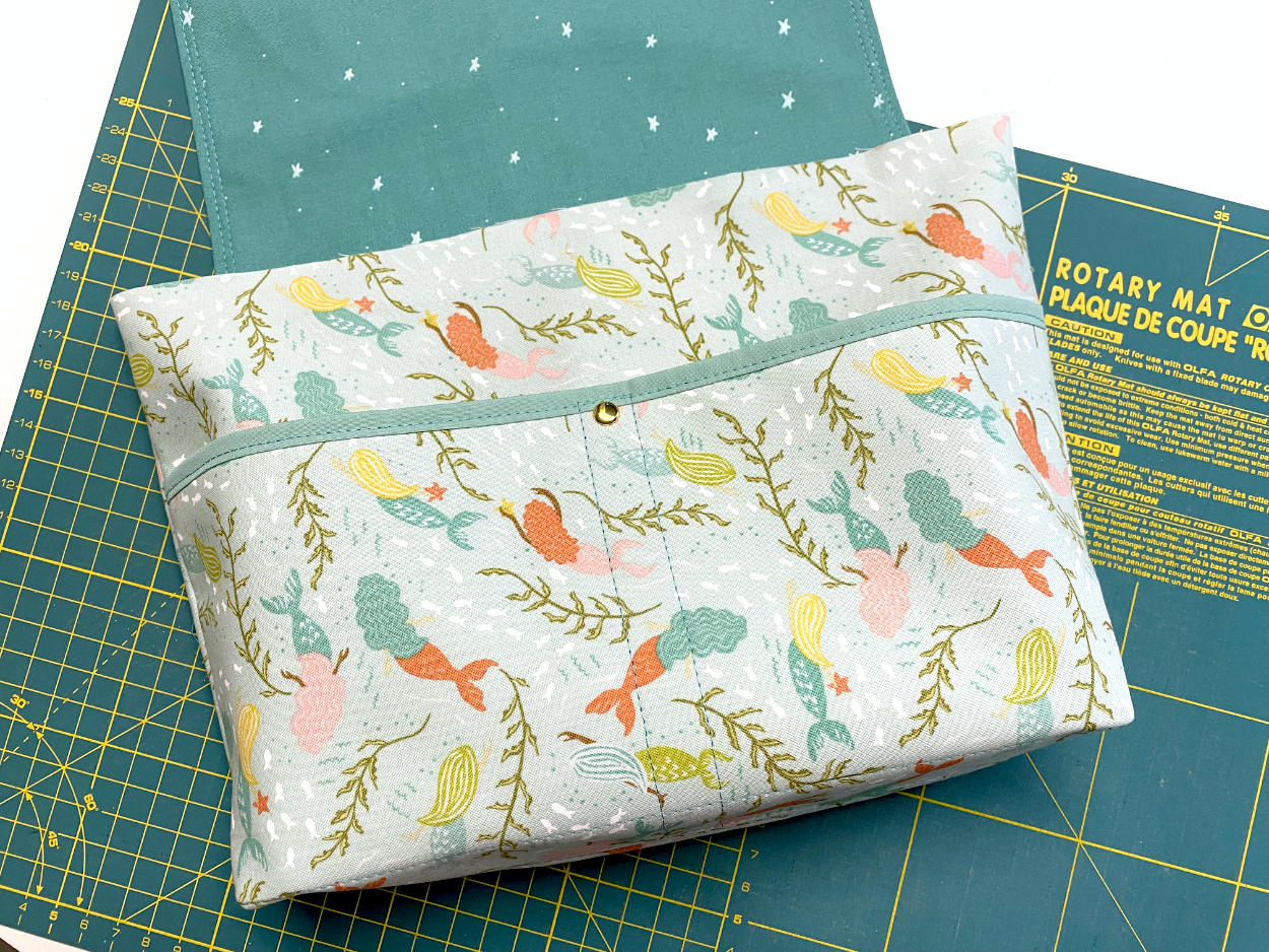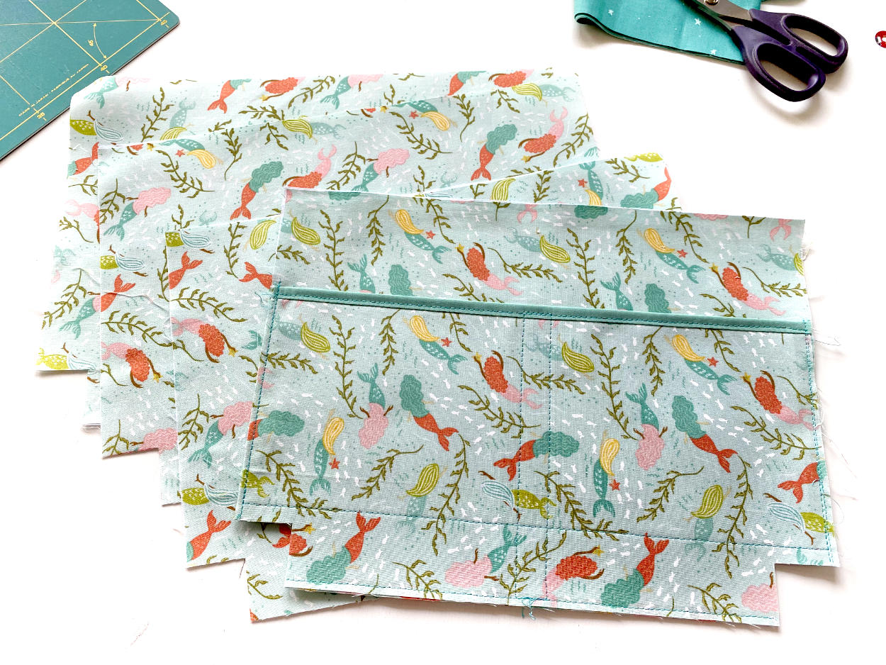 - nähe die Klappe aus Stoffresten, z.B. mit Quilter’s Grid