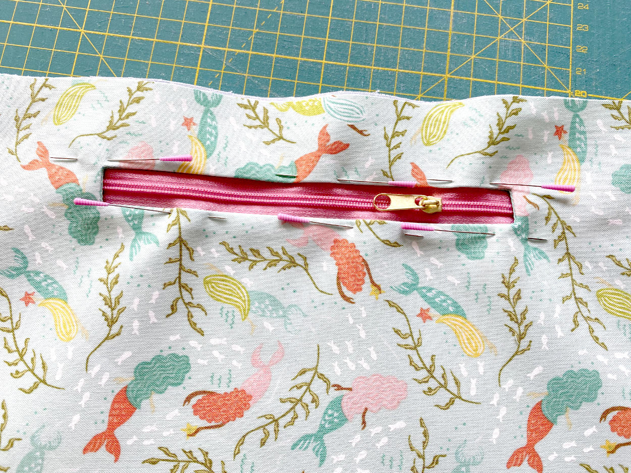 - nähe das Reißverschlussfach in die Innenseite der Tasche
