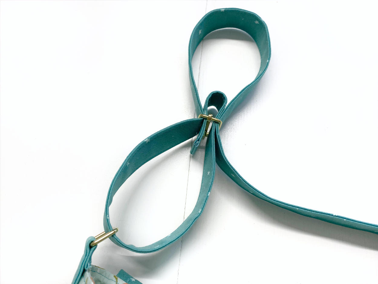 Für Option 2(A) habe ich den Rechteckring an das kurze Gurtstück angenäht, für Option 2(B) würdest du das gleiche mit den beiden D-Ringen machen.