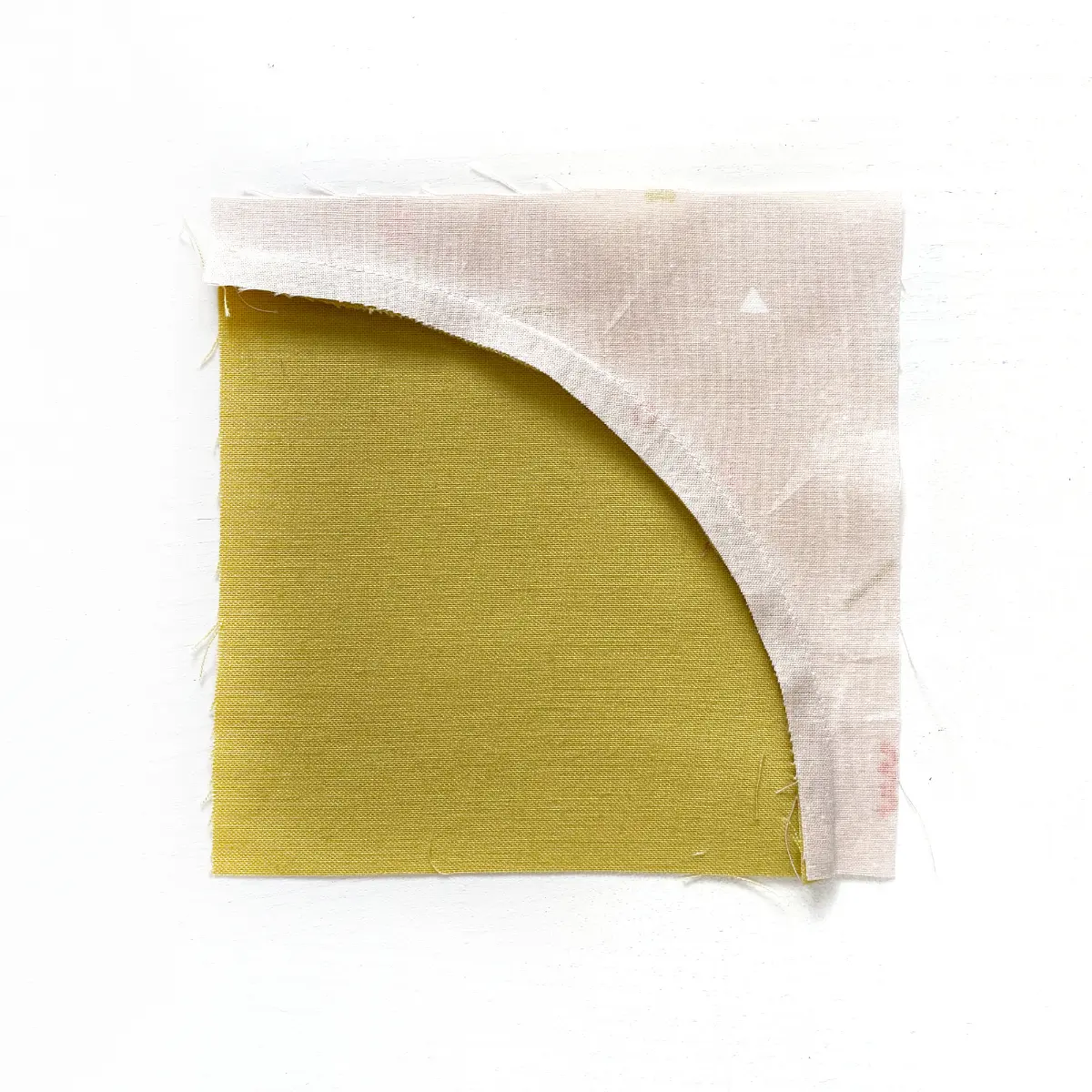 Der Trick für mich ist, dass ich den Block zuerst etwas größer nähe, als ich ihn am Ende brauche, sodaß ich genug Puffer zum Begradigen habe. Bei anderen Blöcken, wie zum Beispiel den Half Square Triangles, machen wir das ja schließlich auch. So muß ich mich nicht stressen, wenn der Block beim Kurvennähen etwas schief wird. Ja, der Stoffverbrauch wird dadurch ein klein wenig erhöht, aber der Frustfaktor massiv verringert!