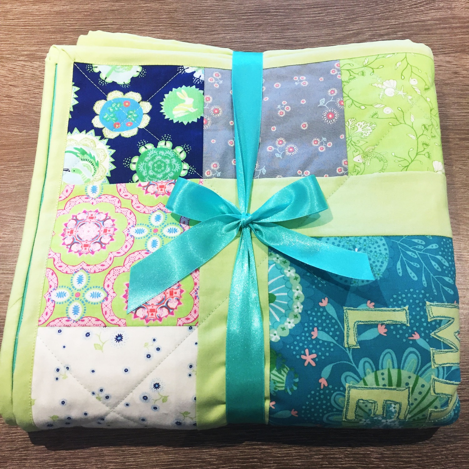 In der letzten Woche durfte ich wieder eine Baby-Decke für eine Kundin nähen. Sie hat sich ein Charm Pack und dazu passende Stoffe ausgesucht. Ungefähr 1,30 x 1,30 m groß sollte sie sein, damit der Kleine auch noch etwas länger was davon hat. Und weil die Decke relativ einfach zu nähen war habe ich mir gedacht, ich schreibe eine kurze Anleitung dazu.