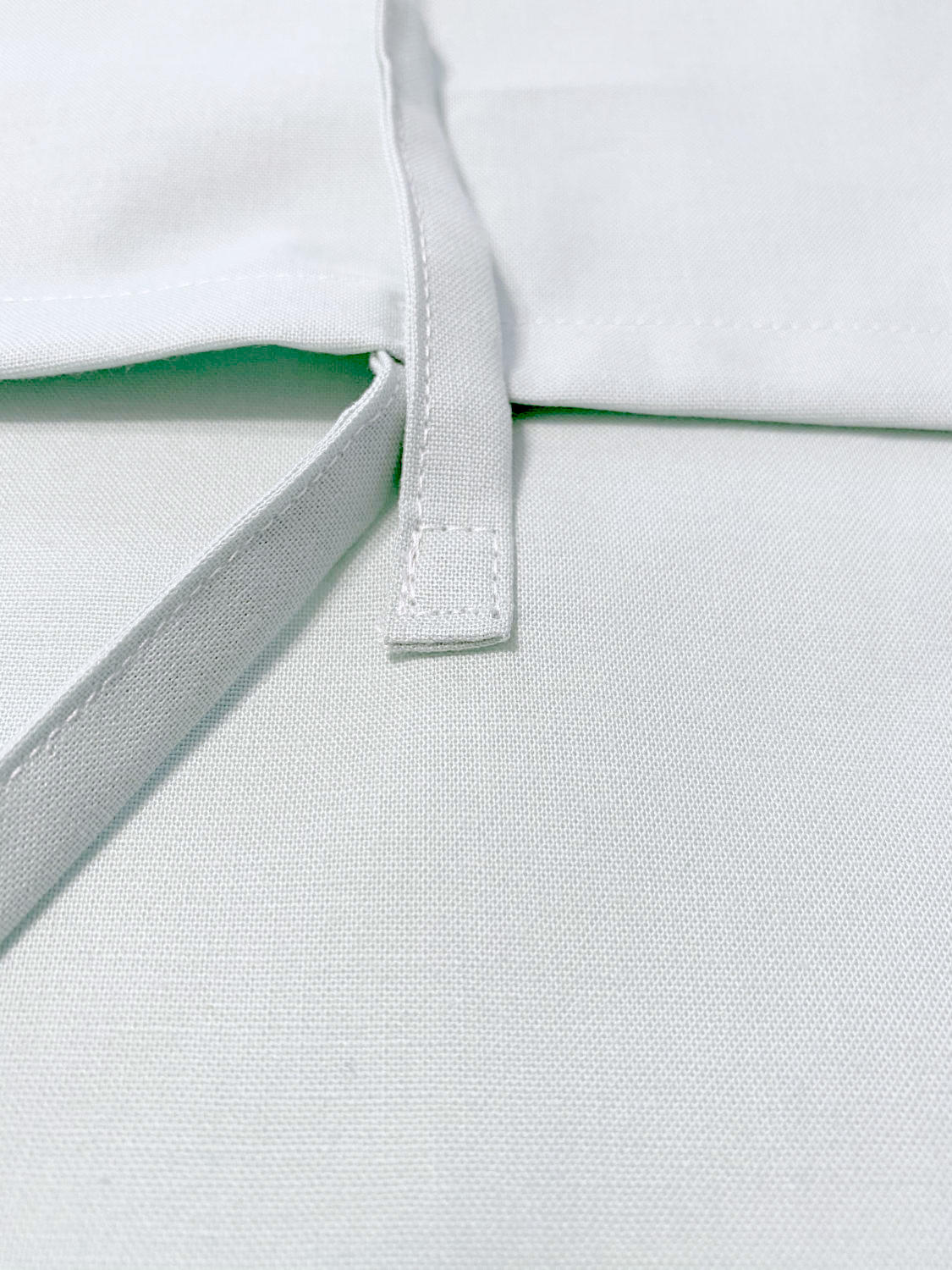 Lege die beiden Rückseitenteile anschließend so aufeinander, dass beide Teile mit der rechten Seite nach oben zeigen und sich nur die beiden eingeschlagenen Kanten überlappen. Mit einem Stift markierst du dir durch das Knopfloch durch auf der unteren Rückseitenhälfte die Position, an der du den Knopf annähen mußt.