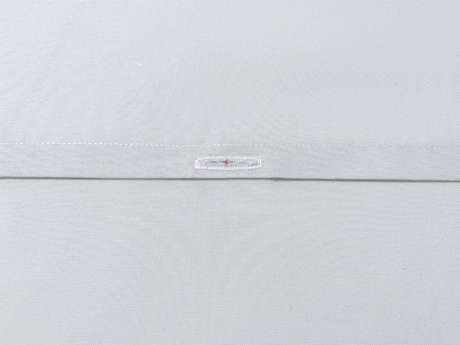 Wenn du die Größe des Knopflochs ausgemessen hast, kannst du dir auf der eingeschlagenen Kante der oberen Rückseitenhälfte entsprechende Markierungen machen. Zum Beispiel: Ich habe mir die Mitte der Rückseite markiert (von rechts nach links – einfach zusammenklappen und einen Knick machen) und dann die Mitte der eingeschlagenen Kante (von oben nach unten – 1,5 cm / 2 = 0,75 cm). Mein Knopfloch ist 4 cm breit, also habe ich jeweils rechts und links von meiner markierten Mitte aus 2 cm abgemessen und markiert, dazwischen muß das Knopfloch genäht werden.