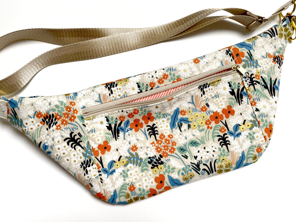 Die Bauchtasche kann alternativ auch als Crossbody Bag genutzt werden. Die Außenseite wurde genäht aus einem Leinen-Baumwoll-Mix, das Innenleben aus Baumwollstoffen. Auf der Rückseite der Tasche befindet sich ein zusätzliches Reißverschlußfach für Mobiltelefon, Bankkarte, etc. (Öffnung etwa 18 cm breit) und auch auf der Vorderseite ist ein weiteres Fach für Kleinkram. Im Inneren ist ein kleines Steckfach.
