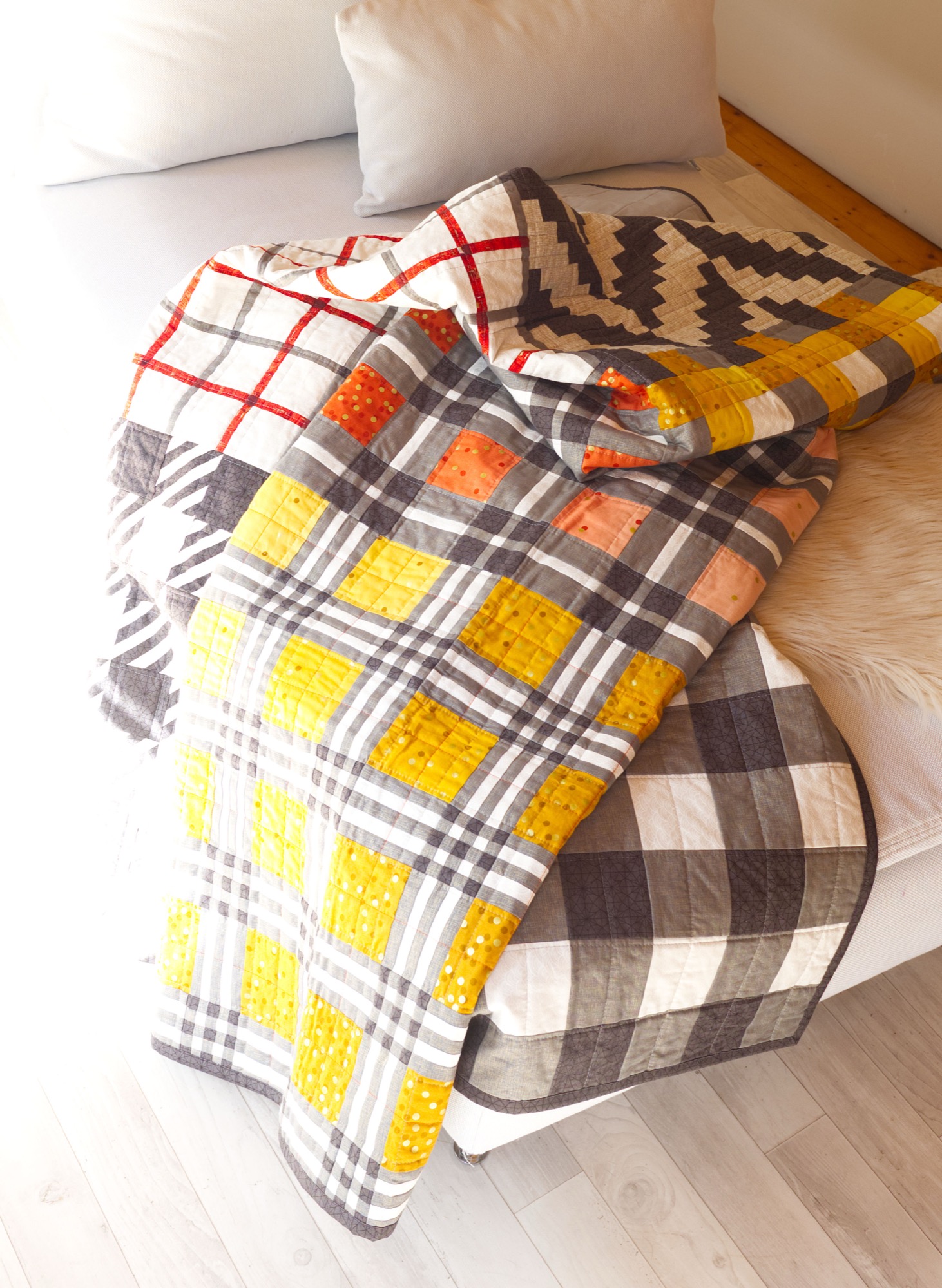 Diese elegante Sofadecke ist entstanden nach einer Idee und Anleitung von Michelle Freedman für einen Quilt-Along der Portland Modern Quilt Guild.