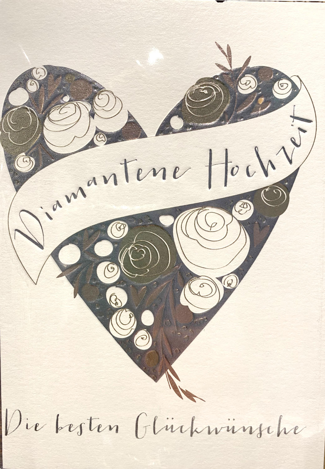 Doppelkarte aus Naturpapier mit Blind- & Folienprägung in silber, gold & kupfer in Größe B6 (ca. 12 x 17 cm) mit Kraftpapier-Umschlag
