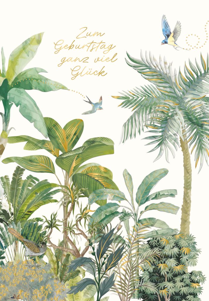 Grußkarte – Zum Geburtstag ganz viel Glück – Pflanzen und Vögel