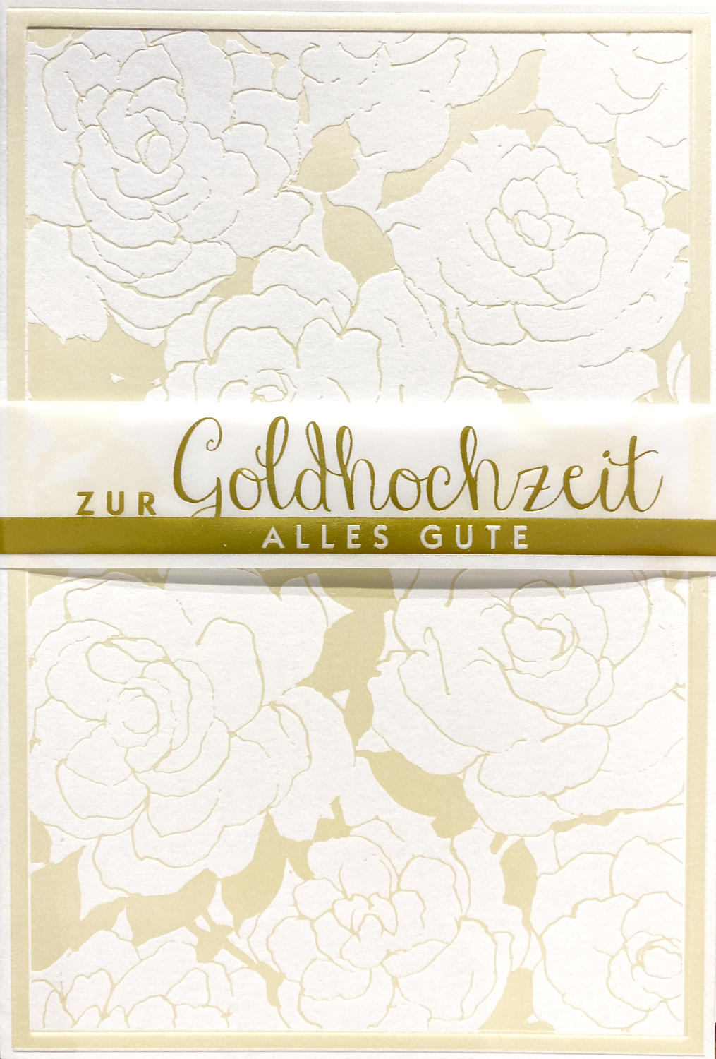 Doppelkarte in Größe B6 (ca. 12 x 17 cm) mit Folienprägung, Perlmuttfarbe und Transparentpapier, inklusive Umschlag