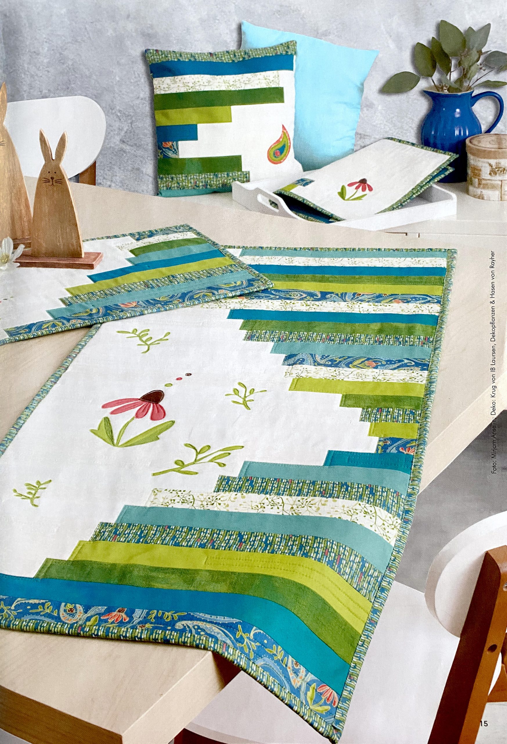 Passend zu unserem Schnittmuster “Frühlingsgefühle” haben wir dir hier eine Materialpackung zusammengestellt, mit der du den Läufer in der Größe 45 x 110 cm oder zwei Tischsets (ca. 34 x 48 cm) und eine Kissenhülle (für 40 x 40 cm Kissen) nähen kannst.