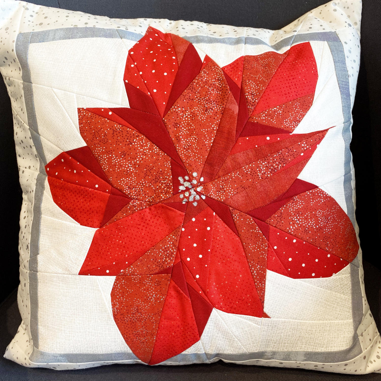 Dies ist die Materialpackung für unsere Foundation Paper Piecing Vorlage „Winterliche Blütenpracht“ aus dem „Patchwork & Nähen“-Heft 6/22. Das Motiv misst etwa 40 x 40 cm und ist somit ideal geeignet für eine Kissenhülle.