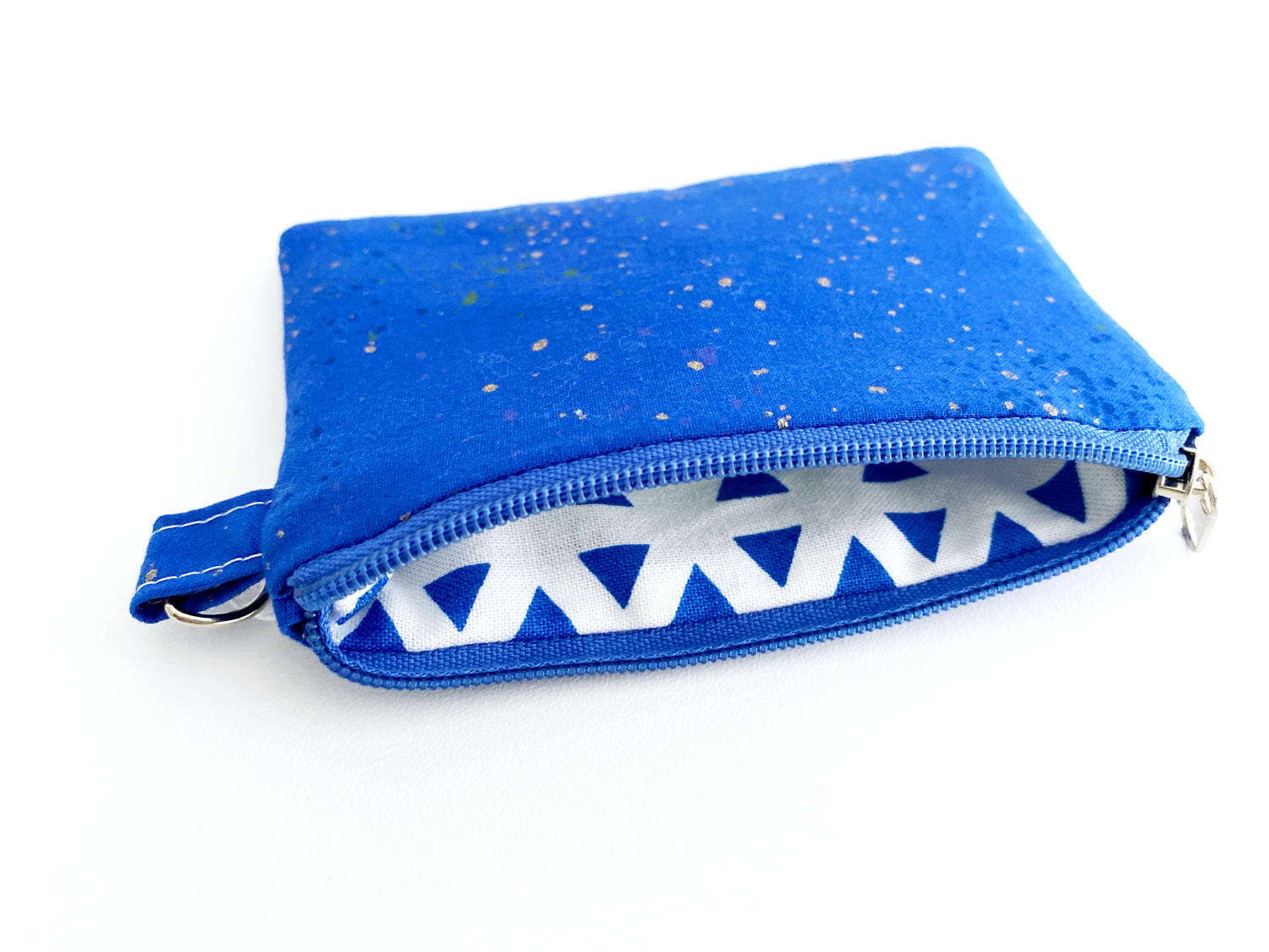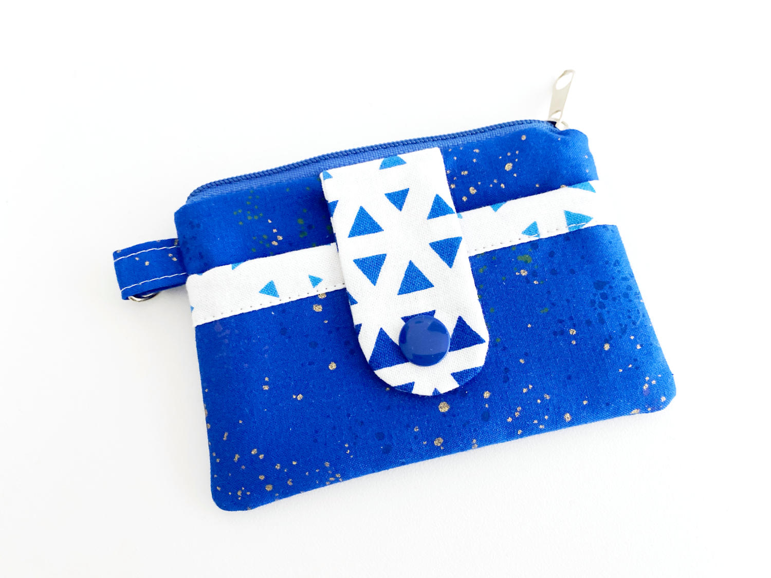 Das kleine Reißverschlußtäschchen eignet sich ideal zum Beispiel als Mini-Geldbörse oder auch als wiederverwendbare Geschenkverpackung für Gutscheine. Im vorderen Fach, das mit einem Druckknopf geschlossen wird, finden alle Karten in Standardgröße Platz, z.B. ec-Karten oder Visitenkarten. Genäht wurde das Täschchen aus reinen Baumwollstoffen, die Außenseite ist mit einer leichten Vlieseline hinterlegt.