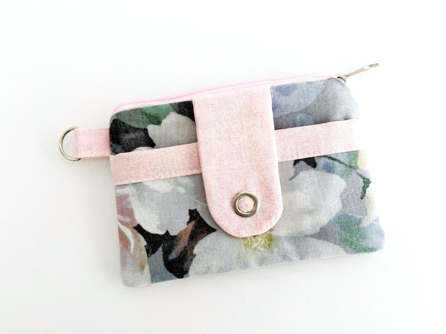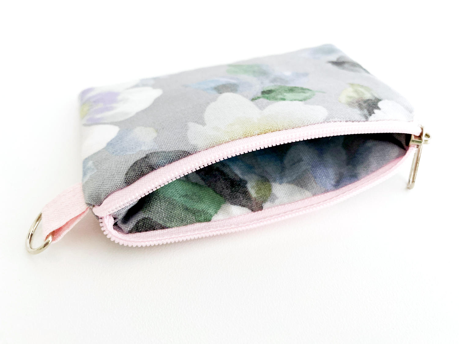 Das kleine Reißverschlußtäschchen eignet sich ideal zum Beispiel als Mini-Geldbörse oder auch als wiederverwendbare Geschenkverpackung für Gutscheine. Im vorderen Fach, das mit einem Druckknopf geschlossen wird, finden alle Karten in Standardgröße Platz, z.B. ec-Karten oder Visitenkarten. Genäht wurde das Täschchen aus reinen Baumwollstoffen, die Außenseite ist mit einer leichten Vlieseline hinterlegt.