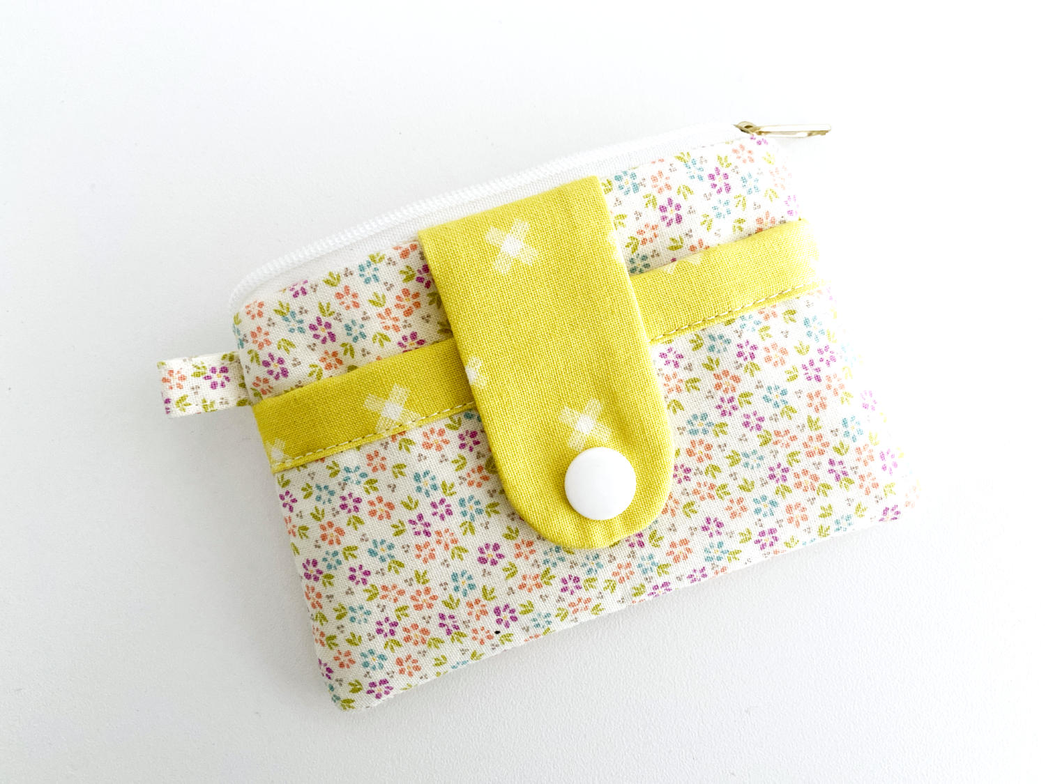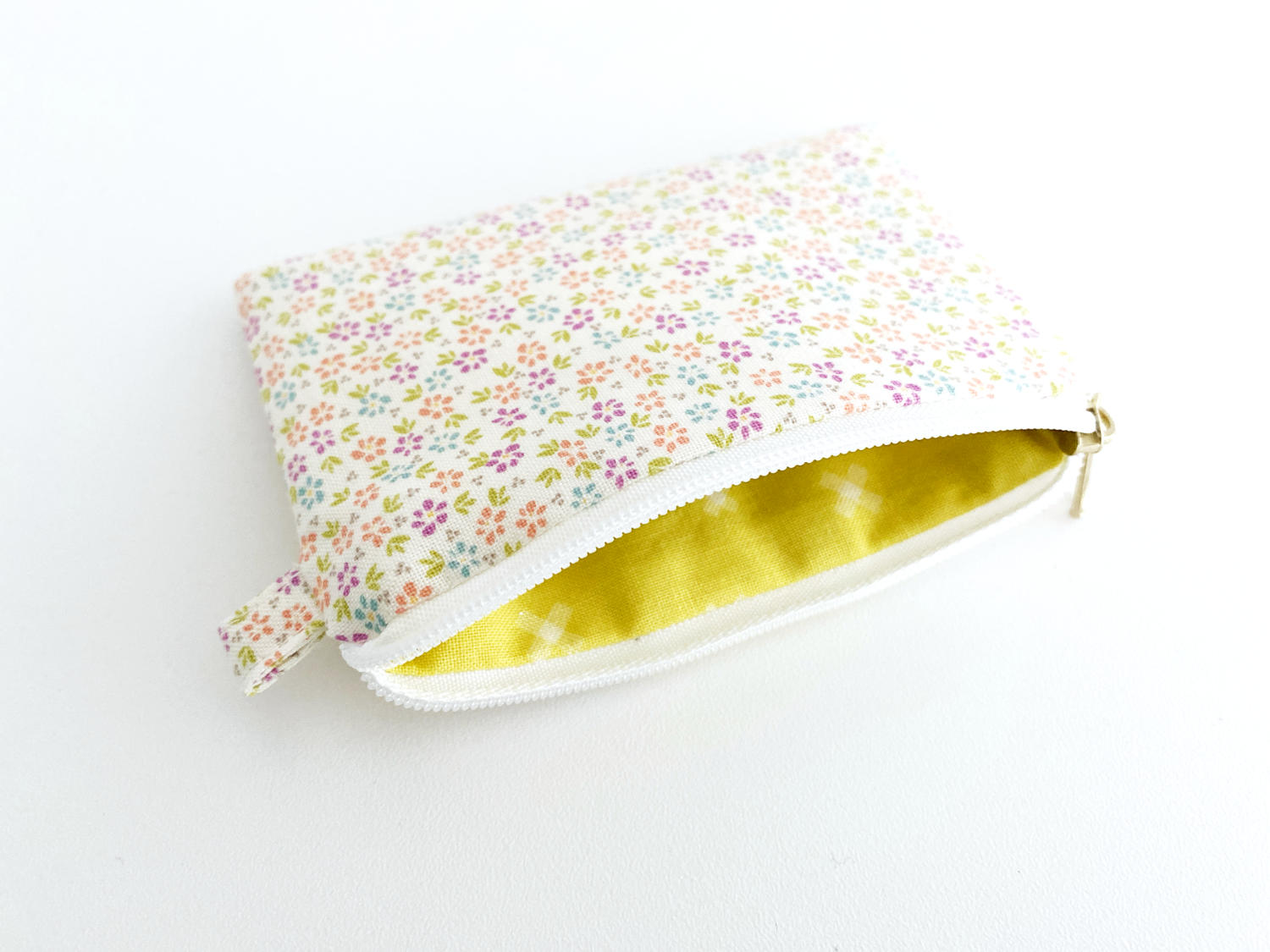 Das kleine Reißverschlußtäschchen eignet sich ideal zum Beispiel als Mini-Geldbörse oder auch als wiederverwendbare Geschenkverpackung für Gutscheine. Im vorderen Fach, das mit einem Druckknopf geschlossen wird, finden alle Karten in Standardgröße Platz, z.B. ec-Karten oder Visitenkarten. Genäht wurde das Täschchen aus reinen Baumwollstoffen, die Außenseite ist mit einer leichten Vlieseline hinterlegt.