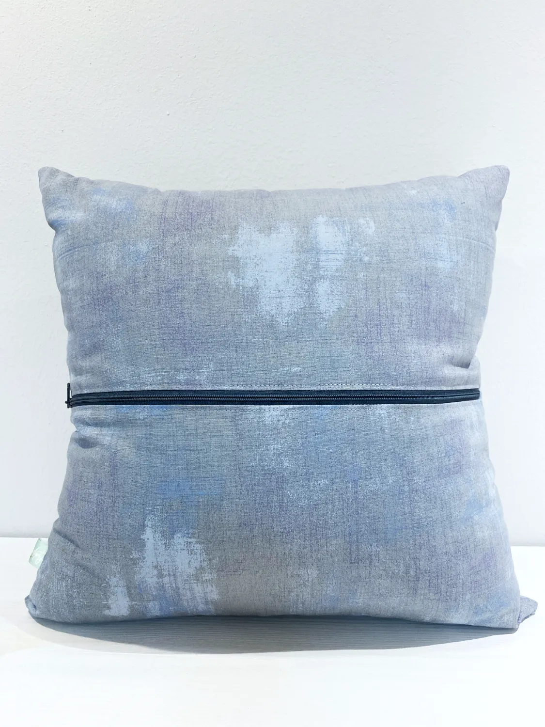 Eine handgefertigte Patchwork-Kissenhülle aus Baumwollstoffen. Die Vorderseite ist mit einem Baumwollvlies hinterlegt und wurde abgesteppt. Der Reißverschluß befindet sich mittig auf der Rückseite.