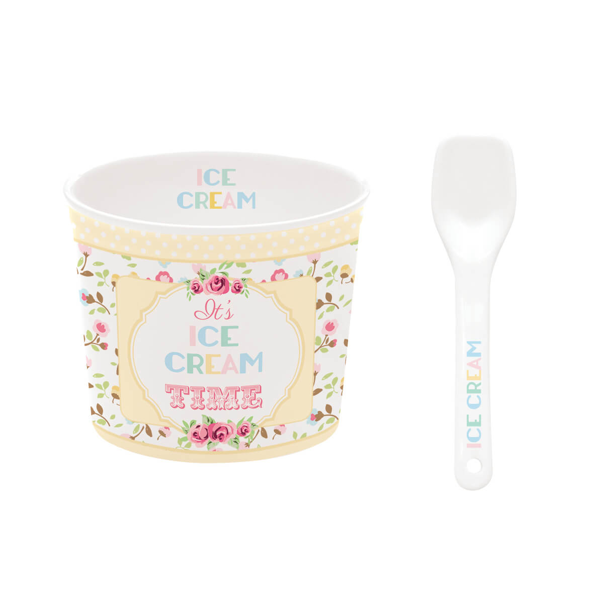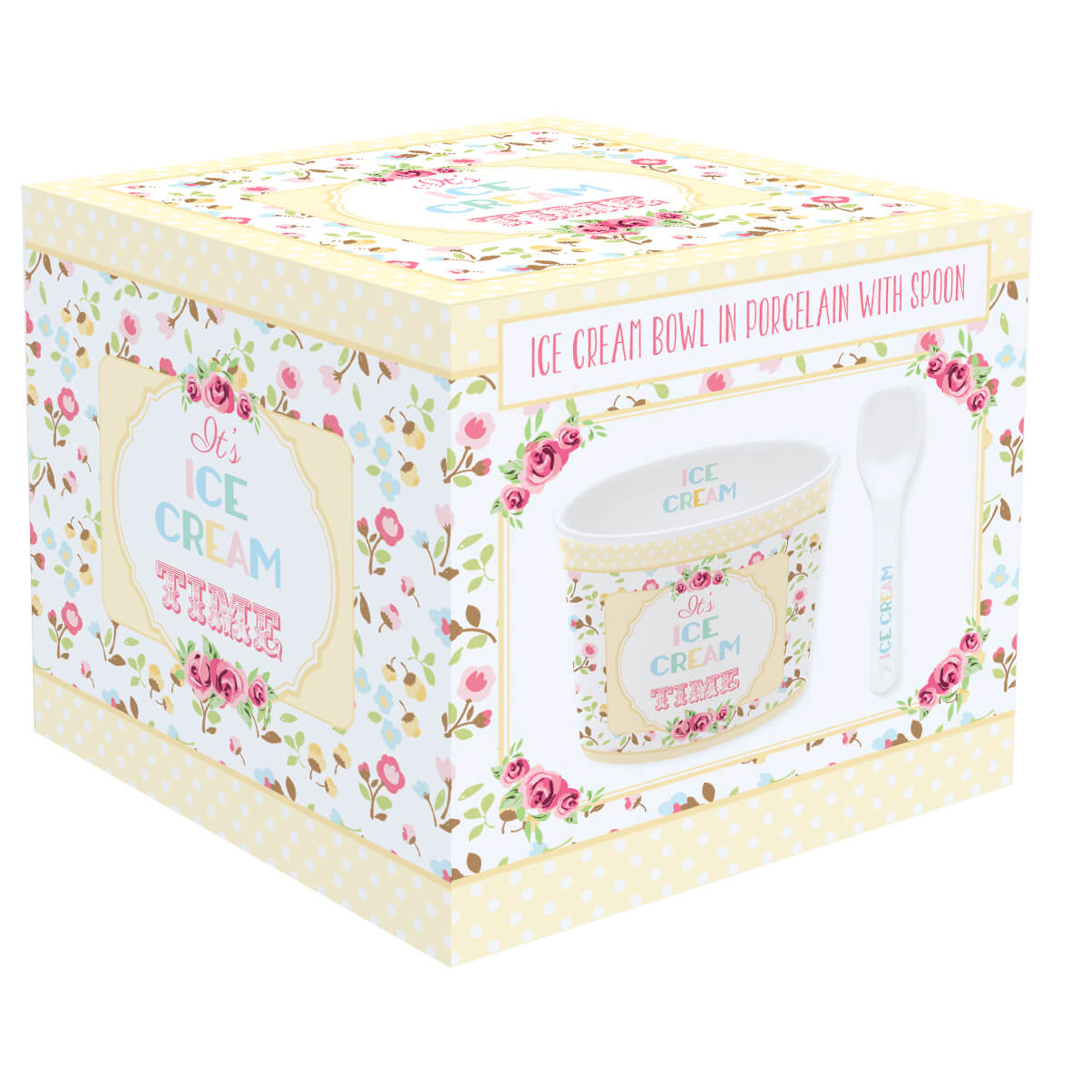 Porzellaneisbecher „It’s Ice Cream Time“ mit Löffel, gelb – Easy Life