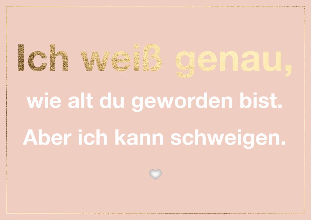 Kartentext: Ich weiß genau wie alt du geworden bist. Aber ich kann schweigen.