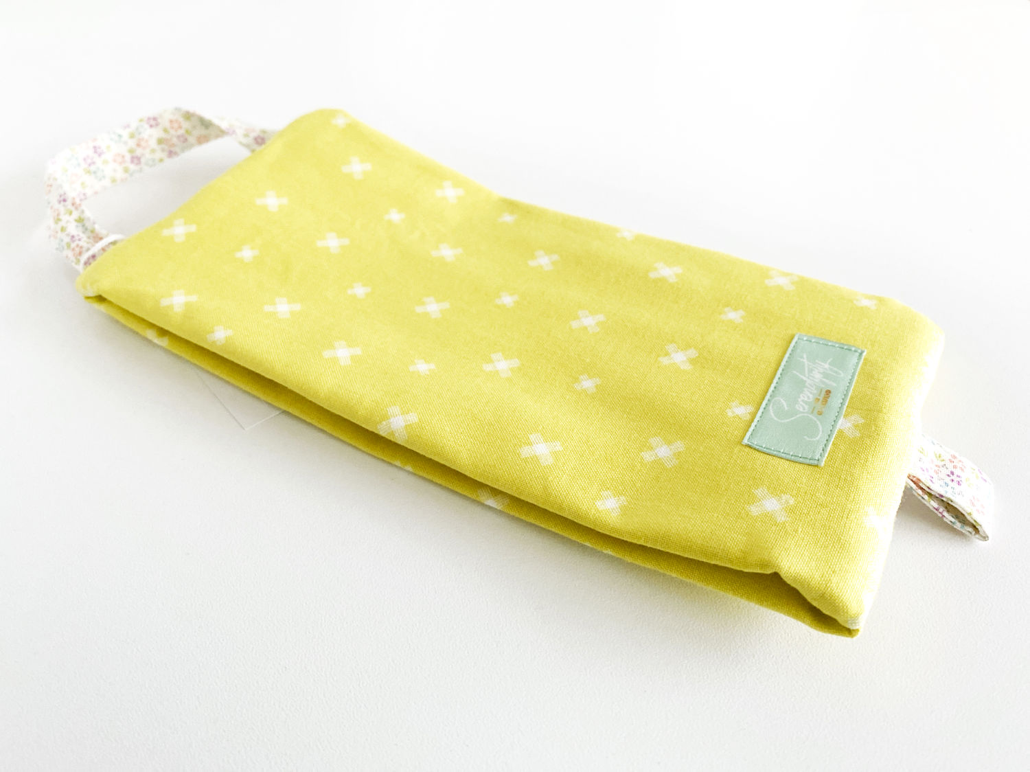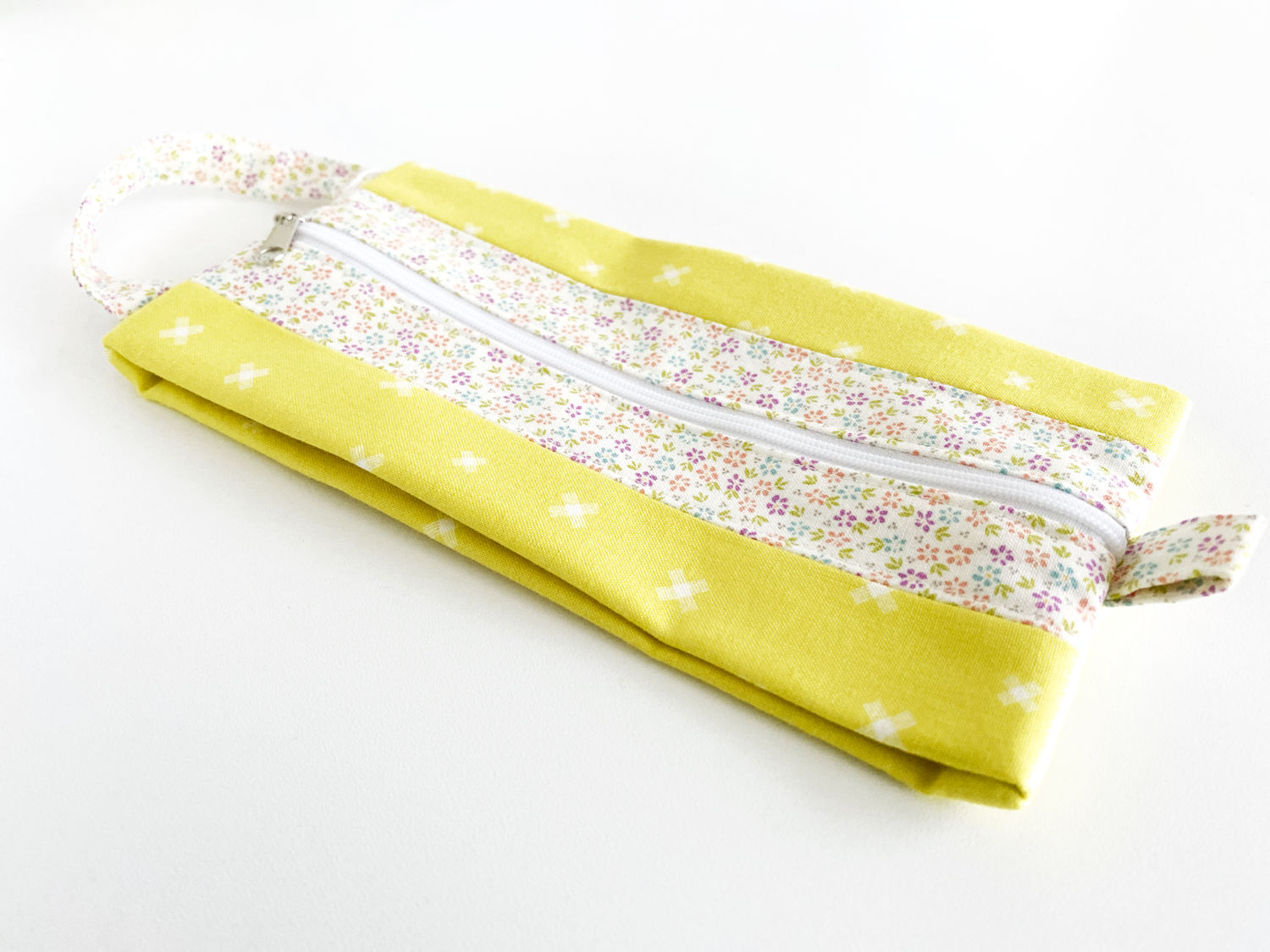 Die Tasche ist universell einsetzbar, zum Beispiel als Etui für Stifte, für Nähzubehör wie Schere und Rollschneider, für Ladekabel und Zubehör auf Reisen oder für Kleinkram in der Handtasche.