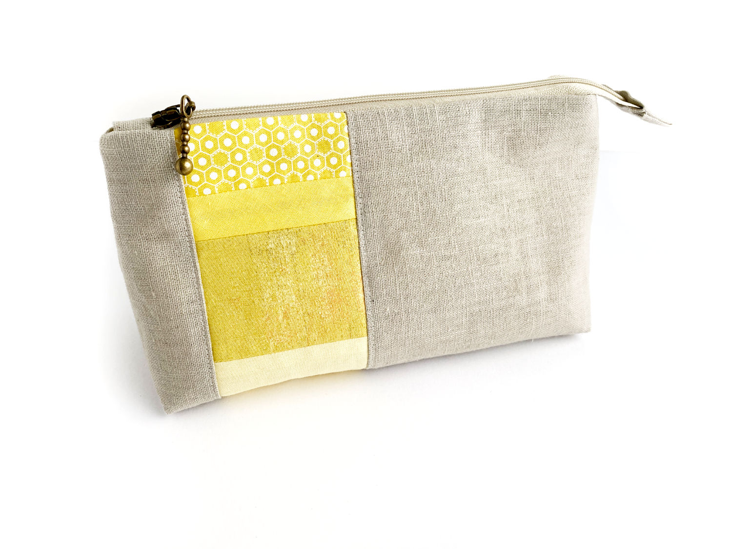 Die kleine Reißverschlußtasche wurde aus Baumwollleinen, bzw. Baumwollstoff genäht und ist mit einer leichten Vlieseinlage verstärkt. So behält sie ihren Stand, bleibt aber trotzdem schön weich, leicht und knautschig.