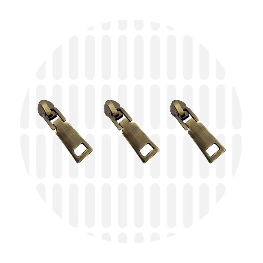 Schieber für Endlos-Reißverschluss #5 – Dangle Altmessing – 3er Set – ZipperZoo