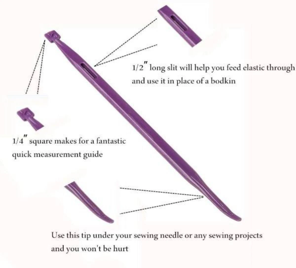 Das Multifunktionswerkzeug für alle Quilterinnen, perfekt zum Ausformen von Ecken und Kanten nach dem Wenden, zum Glätten von Nahtzugaben, wenn gerade kein Bügeleisen greifbar ist, zum Wenden und Einziehen von Bänden und Gummis, beim Applizieren und Positionieren kleiner Stoffstücke und bei schwierigen Nähten, um den Stoff sicher unter den Nähfuß zu führen.