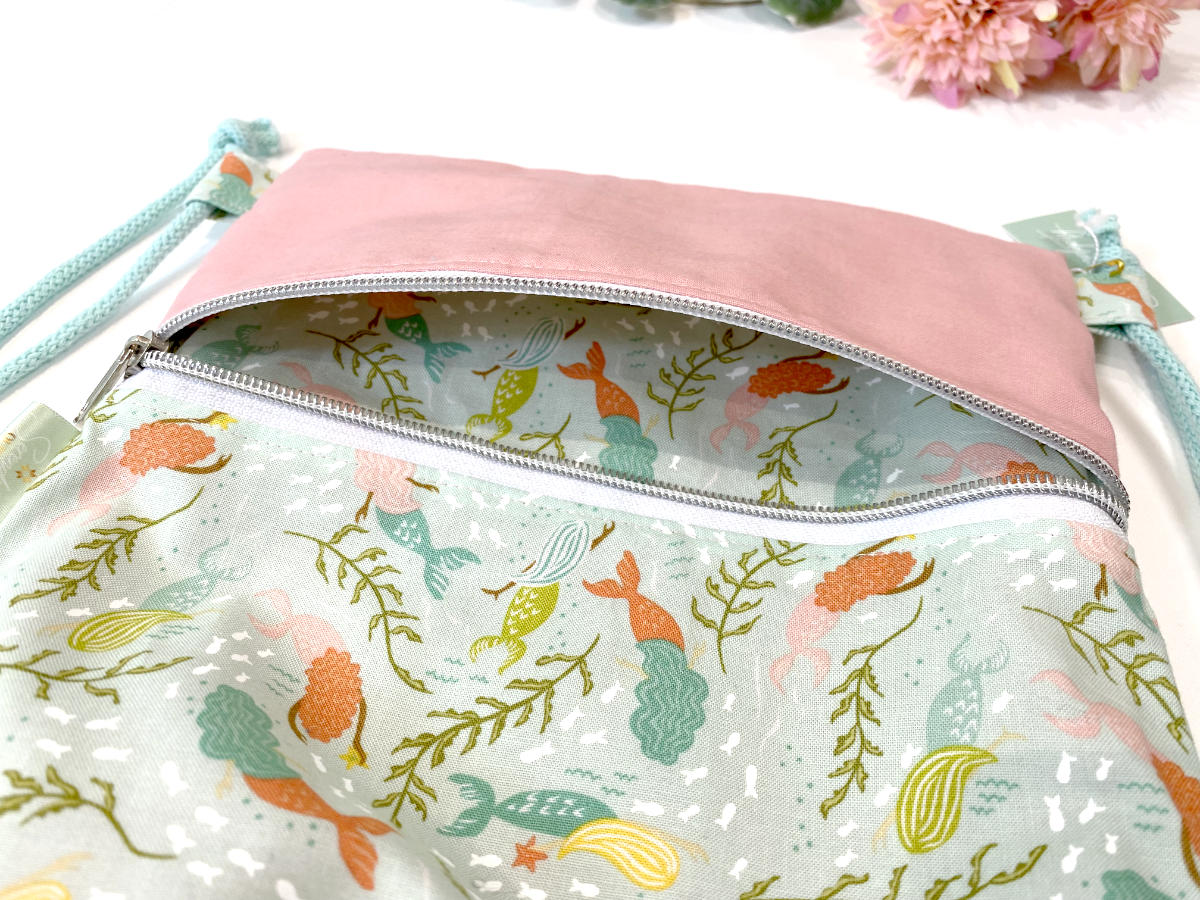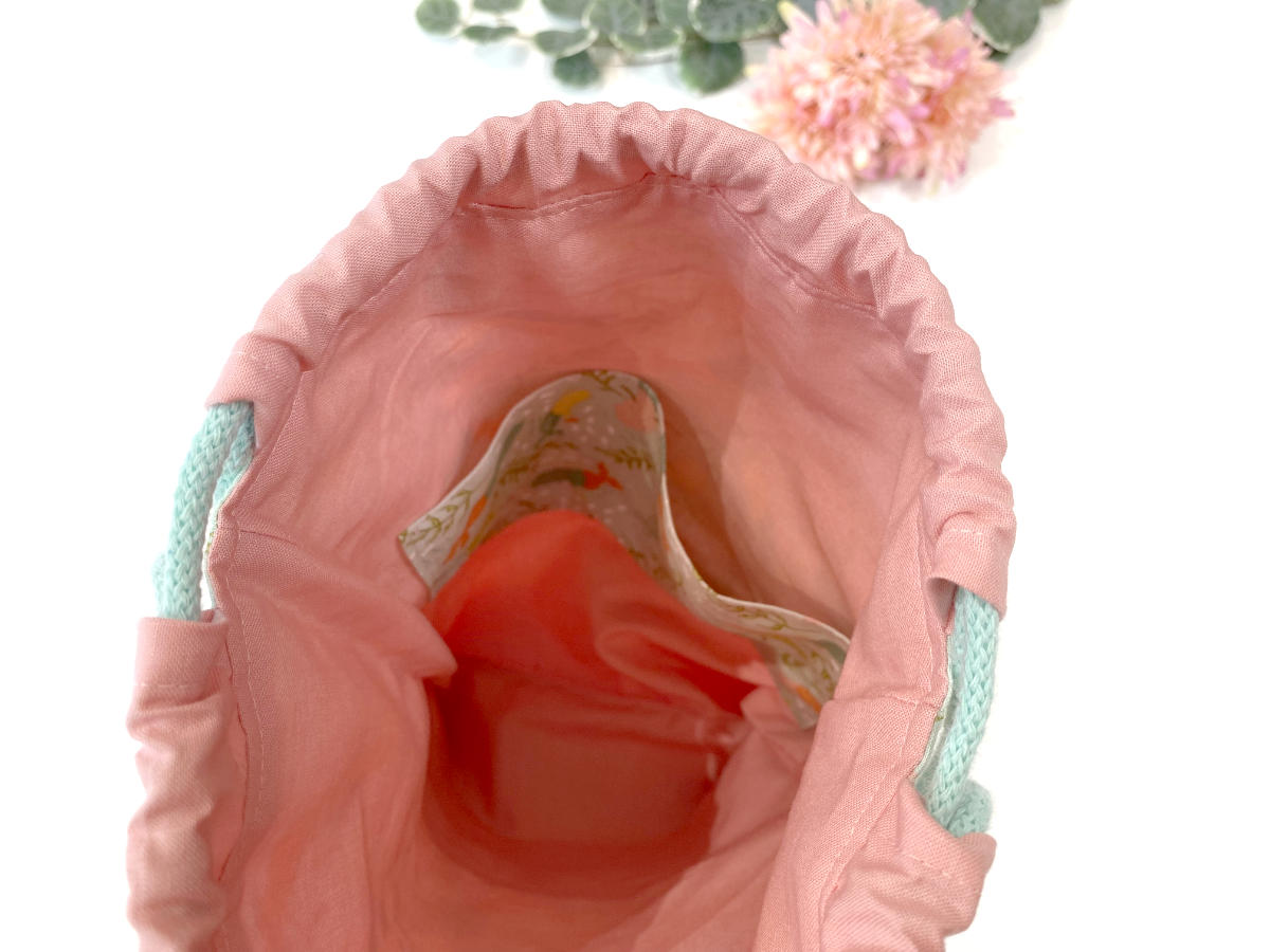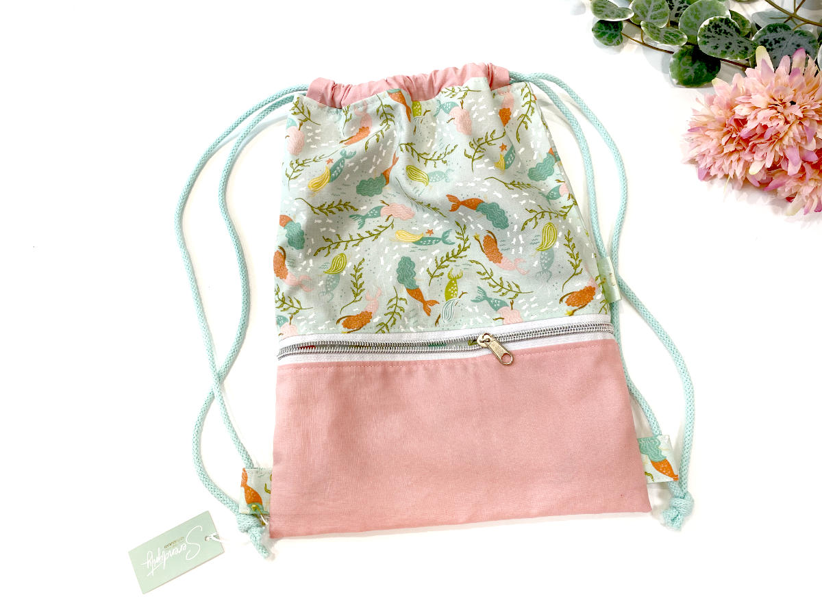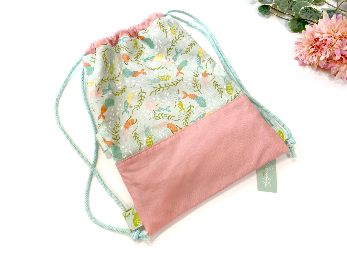 Unser beliebter Turnbeutel-Rucksack in der kleinen Variante. Auf der Vorderseite befinden sich ein kleines Reißverschlussfach für Kleinkram, im Inneren ist viel Platz zum Beispiel für Sportzeug, Spielsachen oder leichtes Gepäck beim Spazierengehen oder im Urlaub.