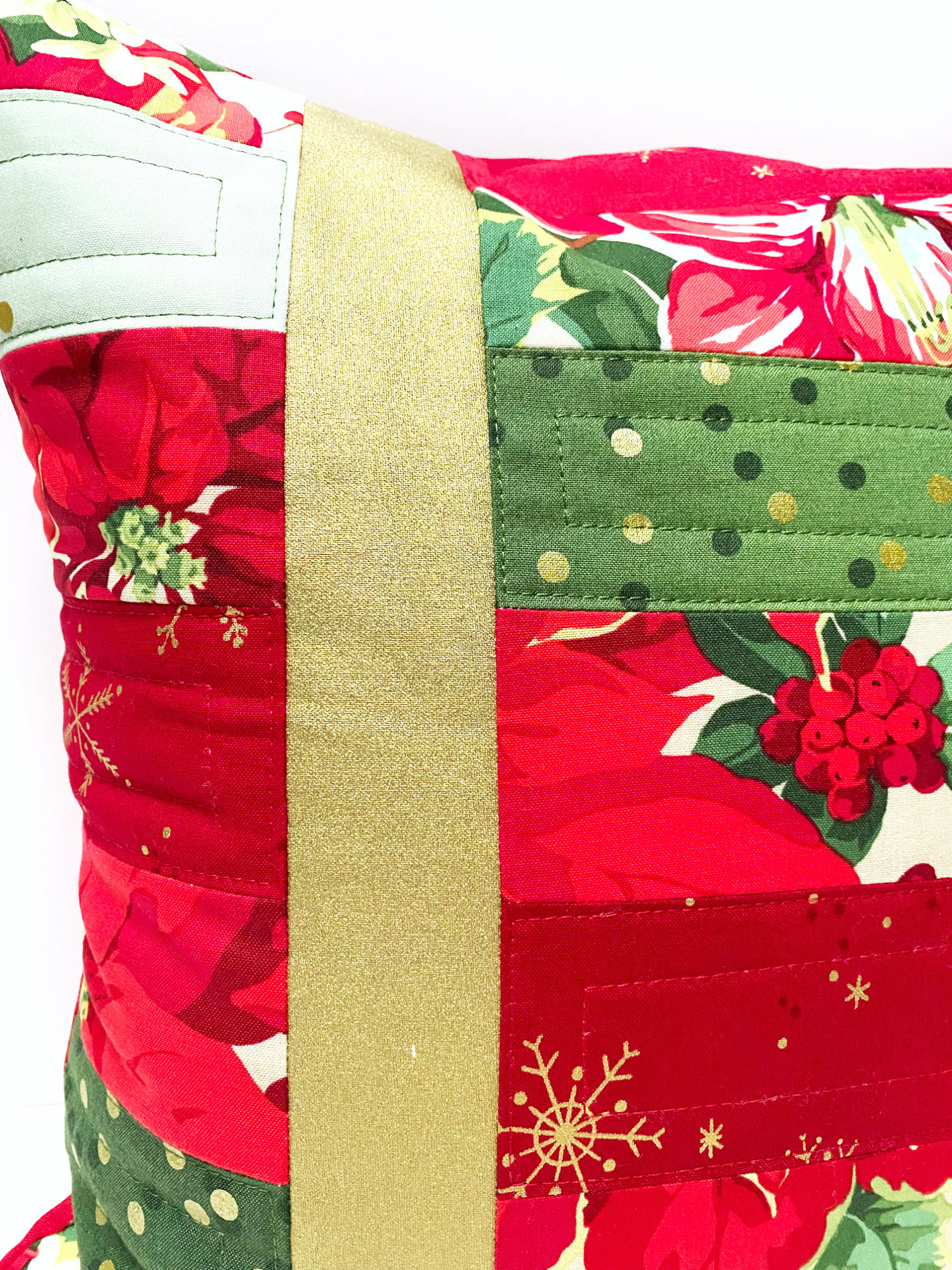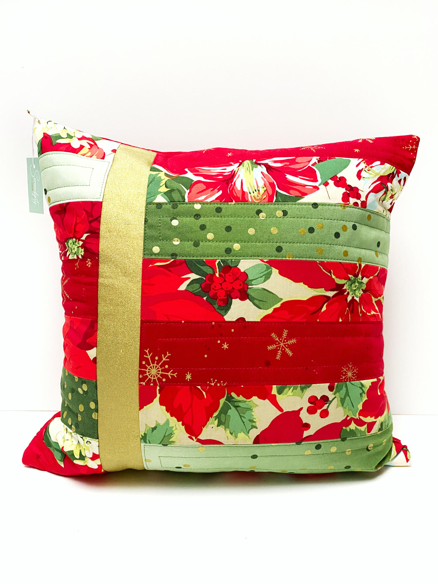 Eine handgefertigte Kissenhülle aus Baumwollstoffen. Die Vorderseite ist mit Vlies hinterlegt und abgesteppt. Der Reißverschluß befindet sich in der unteren Bodennaht.