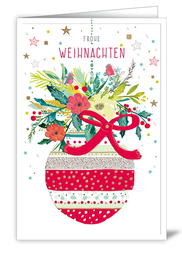 Doppelkarte in Größe B6 (ca. 12 x 17,5 cm) auf Büttenpapier mit Prägung und Goldfolierung inklusive weißem Umschlag