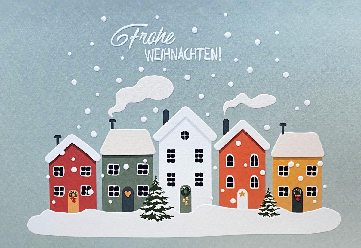Doppelkarte in Größe B6 (ca. 12 x 17 cm) mit Effektlack und Hochprägung auf Naturpapier