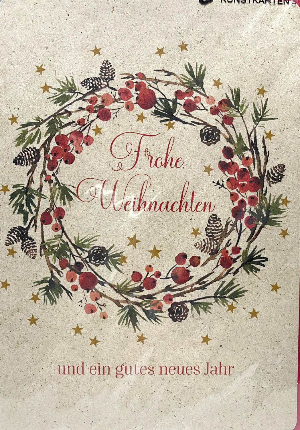Weihnachtskarte – Frohe Weihnachten und ein gutes neues Jahr – Beerenkranz