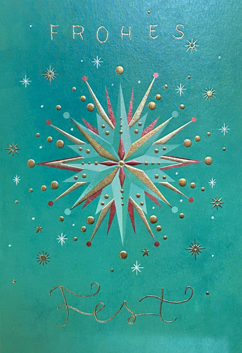 Doppelkarte in Größe B6 (ca. 12 x 17 cm) mit Gold- und Hochprügung auf Naturpapier